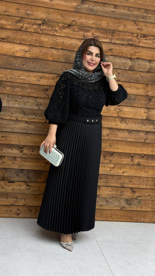 جنس بالا تنه دانتل مشکی / جنس پایین تنه کرپ دبل